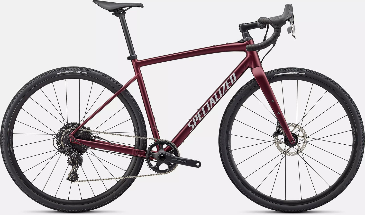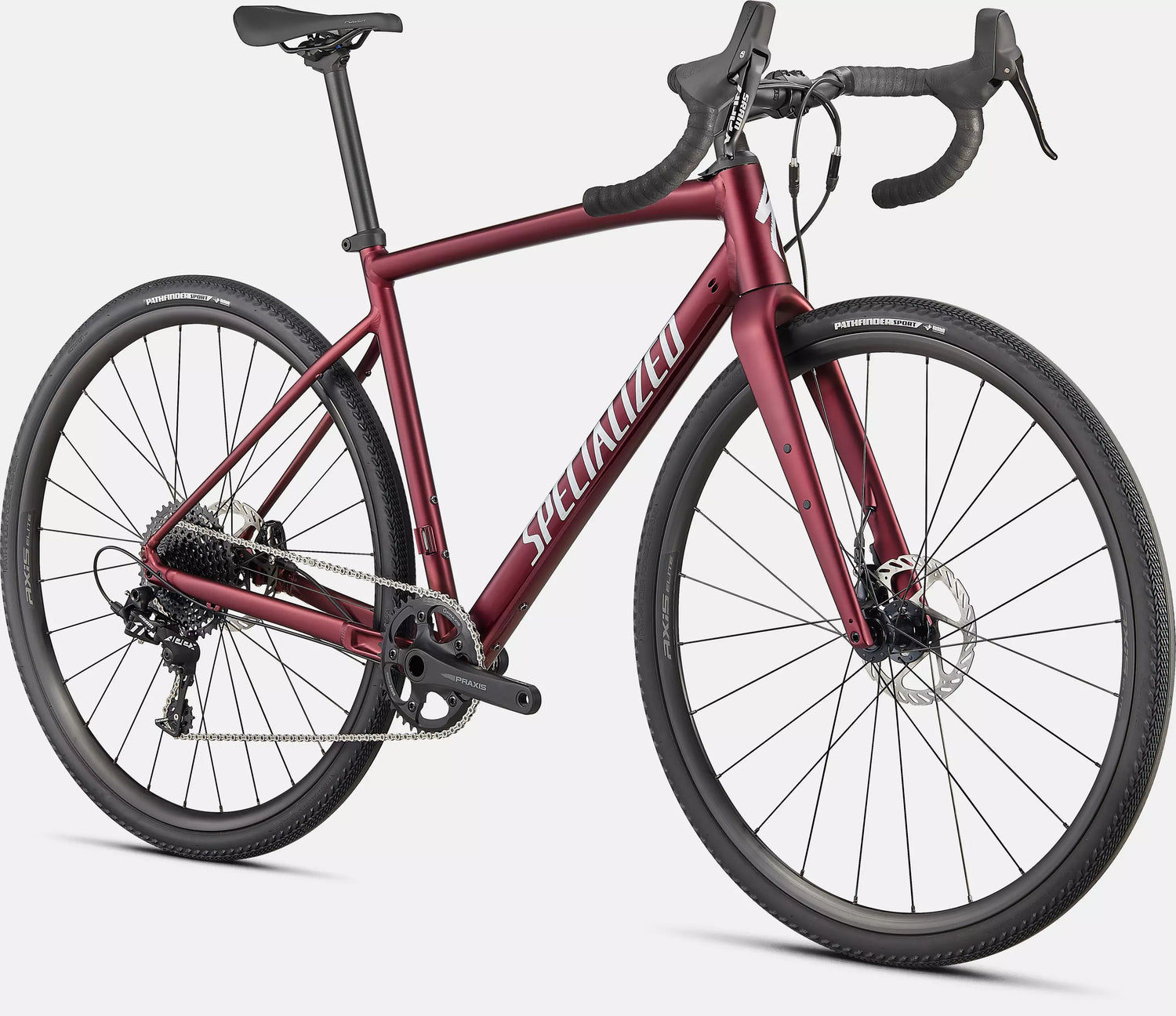 Trasmissione SRAM Apex 1x11, ruote Axis Elite Disc e pneumatici Pathfinder Sport 700x38 completano un pacchetto pronto per lunghe avventure, allenamenti e competizioni gravel.