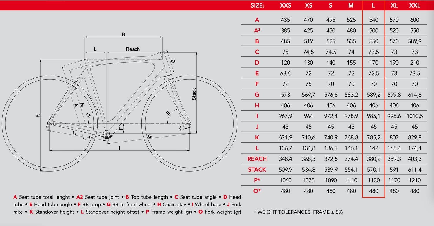 Taglia 55. La bicicletta è adatta ad un' altezza di 175 - 185 cm.