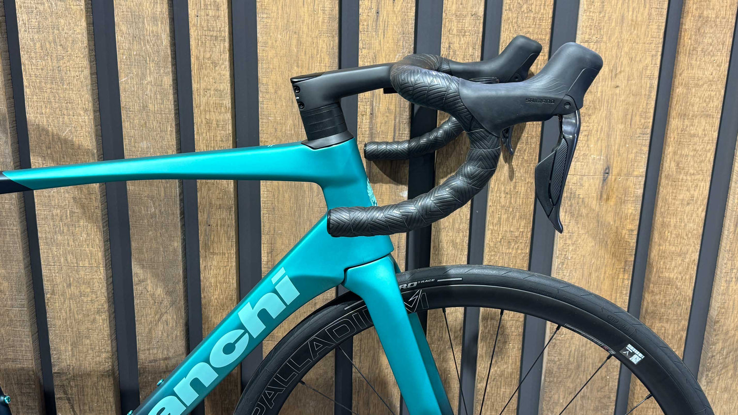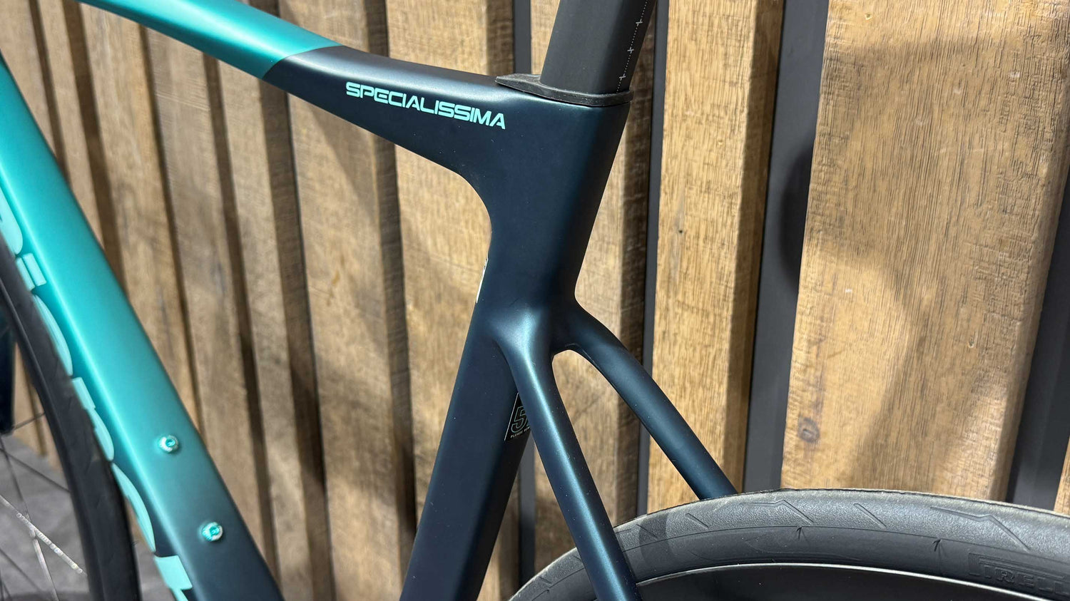 Specialissima PRO Carbon HM mit Bianchi CV System, nur für elektronische Gruppen, vollständig innen verlegte Kabel, Acros ICR Steuersatz, Direct-Mount-Bremsen, BB-PressFit 86,5x41