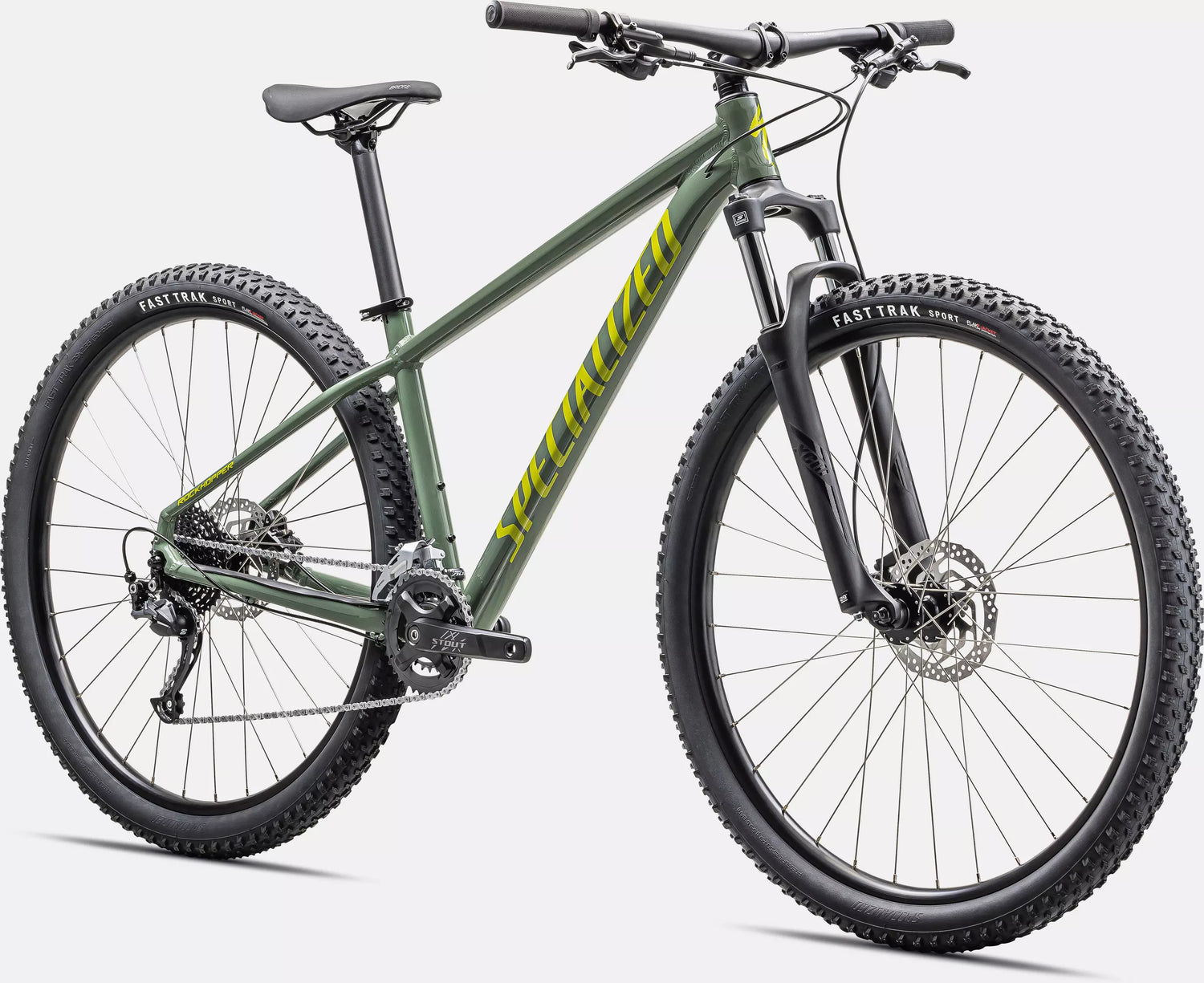 La trasmissione Shimano 2x9 velocità offre un’ampia gamma di rapporti per affrontare salite e tratti veloci, mentre i freni a disco idraulici Shimano BR-MT200 da 180 mm garantiscono potenza e modulabilità. Le ruote con cerchi a doppia parete da 25 mm di canale interno e pneumatici Fast Trak Sport da 2.35” completano un allestimento solido e pronto all’uso.