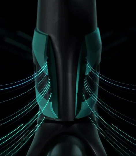 (Patent angemeldet), die seitlich am Steuerrohr integriert sind, lenken den Luftstrom um